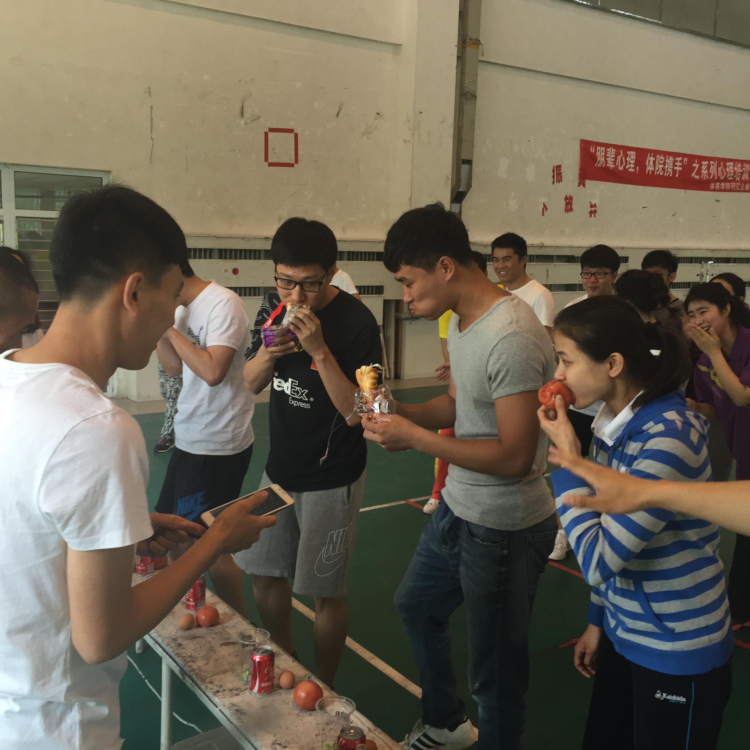 本次活动主要通过阳光体育游戏拓展训练,来增强同学之间的信任,提高同学之间的凝聚力,减轻和缓解同学们生活和学习的压力,提升同学们人际交往能力。阳光体育游戏分别为:食物大赛、大家一起来报数、你来比划我来猜和撕名牌四个游戏。食物大赛中,我们准备了面包、鸡蛋、可乐、西红柿和芥末豆,培养了大家承担和团队协作能力;大家一起来数数”挖掘了大家团结意识及锻炼了自我约束即自律能力;“你来比划我来猜”拓展了大家的知识面及对事物表达的能力也体现了团队合作精神;最活跃最疯狂的就是“撕名牌”了,为了找到锦囊,同学们翻遍了所有角落,现场气氛十分活跃,最让人激动的画面就是进入撕名牌状态,在那一刻起,大家真正的放开自我打破了一些生活中妨碍走向成功的束缚,能够带着轻松的心情向着自己的愿望奋斗!在整个活动中,bb贝博艾弗森官方网站研究生主管教师赵扬老师一直参与其中,赵扬老师充当着老师、朋友、队友不同的角色,鼓励学生勇敢争夺,为自己团队出谋划策,加油打气,带给同学的是无尽的欢乐和内心的支持。