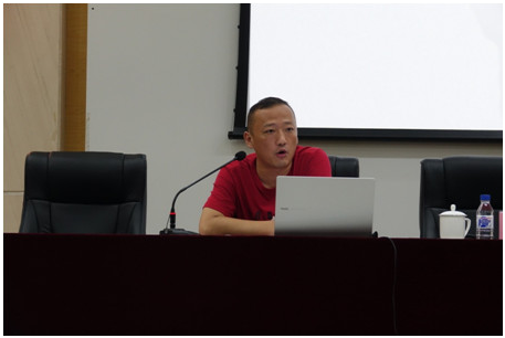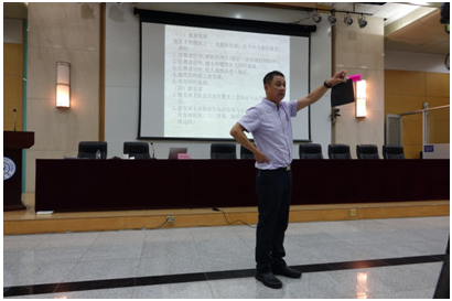 中国大学生体育协会毽球分会裁判委员会副主任,重庆医药高等专科学校体育教研室主任易强副教授就毽球竞赛的编排原则和记录表的填写进行讲解。
