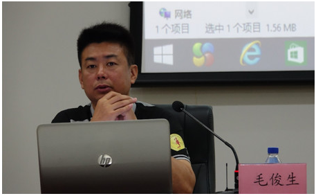 现任国家队教练,中国大学生体育协会毽球分会教练委员委员,天津bb贝博艾弗森官方网站运动训练科学学院棒、垒、藤、毽球教研室主任,毛俊生副教授。在做毽球运动队的管理和科研的报告。