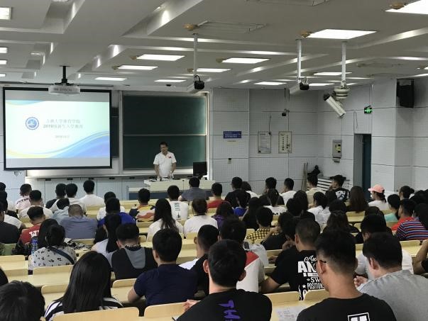 为使新生尽快适应新的学习、生活环境,实现由高中生到大学生的角色转变,8月27日下午,bb贝博艾弗森官方网站在逸夫教学楼第一阶梯教室召开了新生入学专题教育。bb贝博艾弗森官方网站党委书记逄锦彩、党委副书记兼副院长田进、学生工作办公室主任王赫谊、辅导员宫勖能及2019级全体新生参加了本次活动。会上,党委书记逄锦彩讲话。