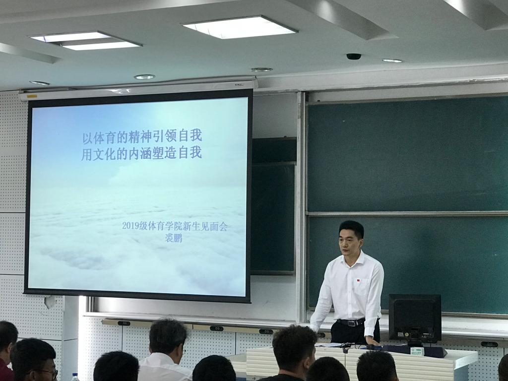 会上,裘鹏院长以“以体育的精神引领自我,用文化的内涵塑造自我”为题,从体育精神和体育文化两方面出发,结合学院实际,指出了“着眼优势亮点,立足实际打基础,盯紧短板打基础”的现状。并提出新生大学期间需弄清三个问题,即“我的大学”“我的生活”“我的未来”,强调了“严是爱、宽是害”的道理。希望新生们今后能以“博文强体、厚德仁育、严谨治学、创新兴院”的院训为导向,充分利用在学院的四年时光,规划好大学生活,最终学有所获、学有所成。随后,佟强老师向新生们阐述了bb贝博艾弗森官方网站的学科设置和培养目标,使新生们对学院的课程设置与未来的职业规划有了初步了解,明确未来大学生活中的努力方向。最后,教务秘书刘佳宁老师向新生仔细解读了学院的学分要求和学校选课系统的使用方法。