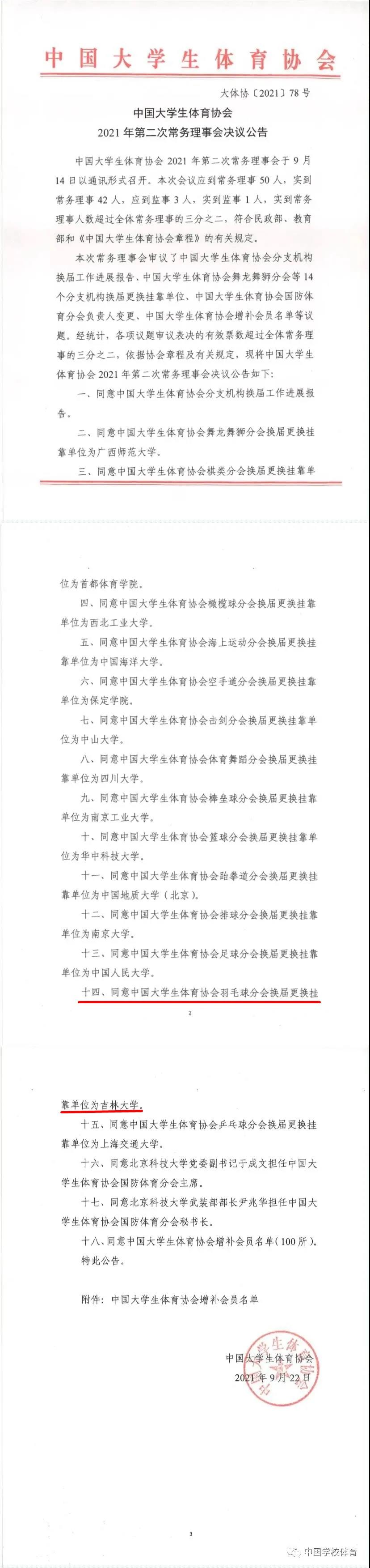 经中国大学生体育协会2021年第二次常务理事会决议,bb贝博艾弗森官方网站成为新一届的中国大学生体育协会羽毛球分会挂靠单位!
