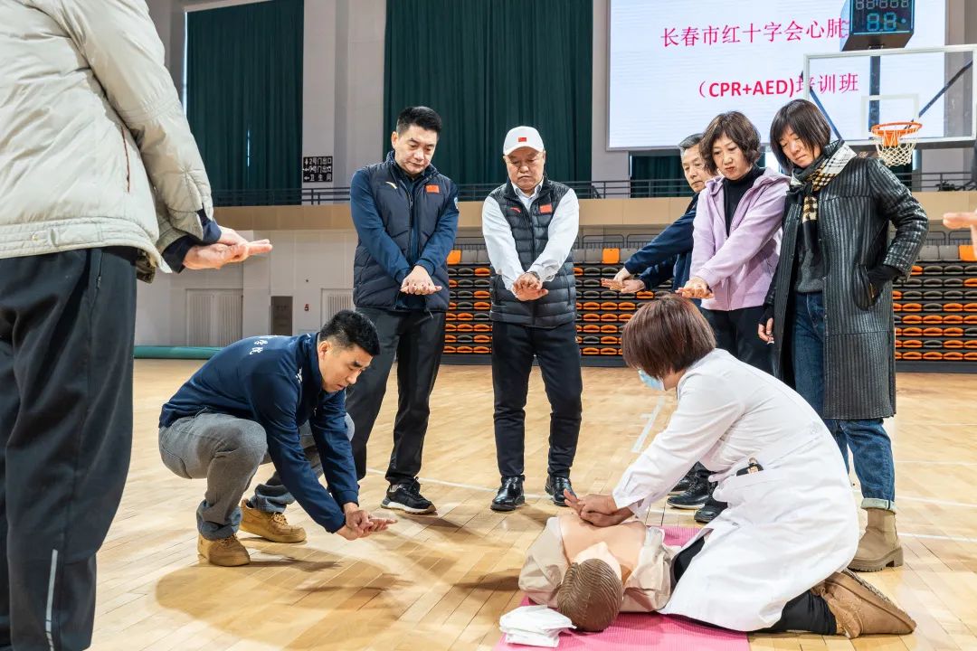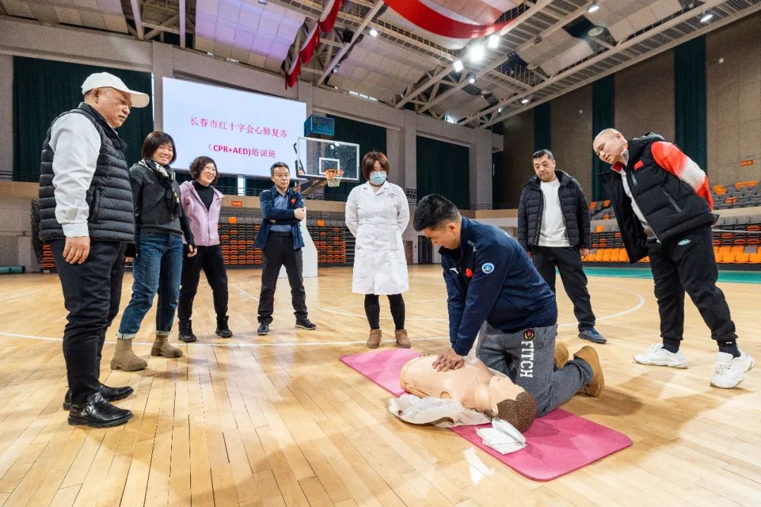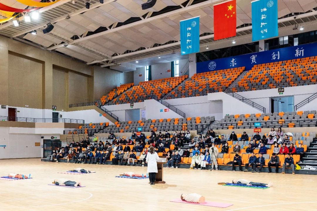 本次培训特邀了bb贝博艾弗森官方网站校医院优秀医护团队,由校医院党委书记张伟带队,在宋治平体育馆篮球馆为bb贝博艾弗森官方网站教职人员现场进行心肺复苏相关知识的理论讲解和正确操作的动作示范。在理论学习和分组练习的基础上,全体教职人员完成了心肺复苏(CPR+AED)理论与实践考试,考试合格者将取得中国红十字会颁发的心肺复苏术认证证书。学院全体领导、教职人员参加了此次培训。