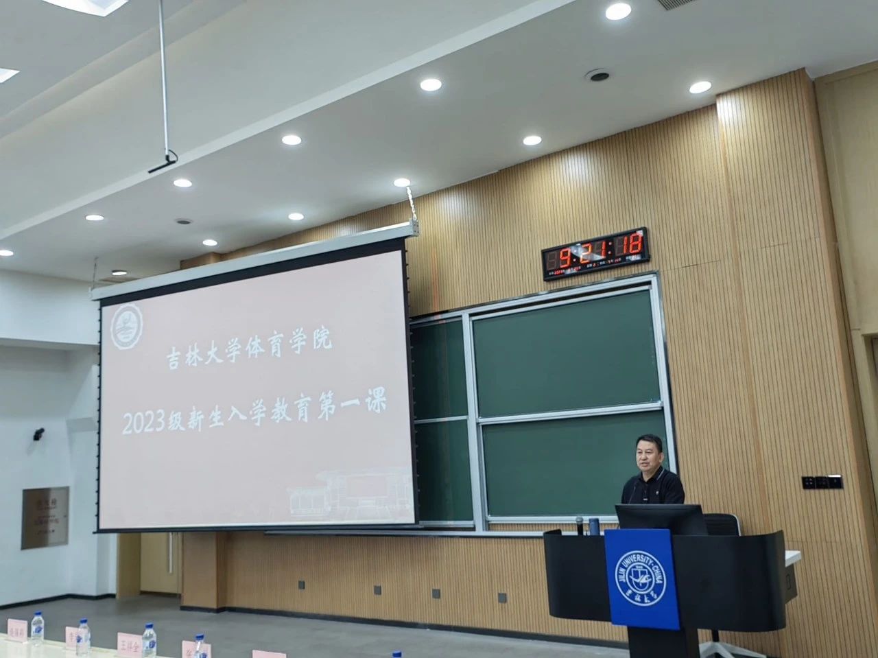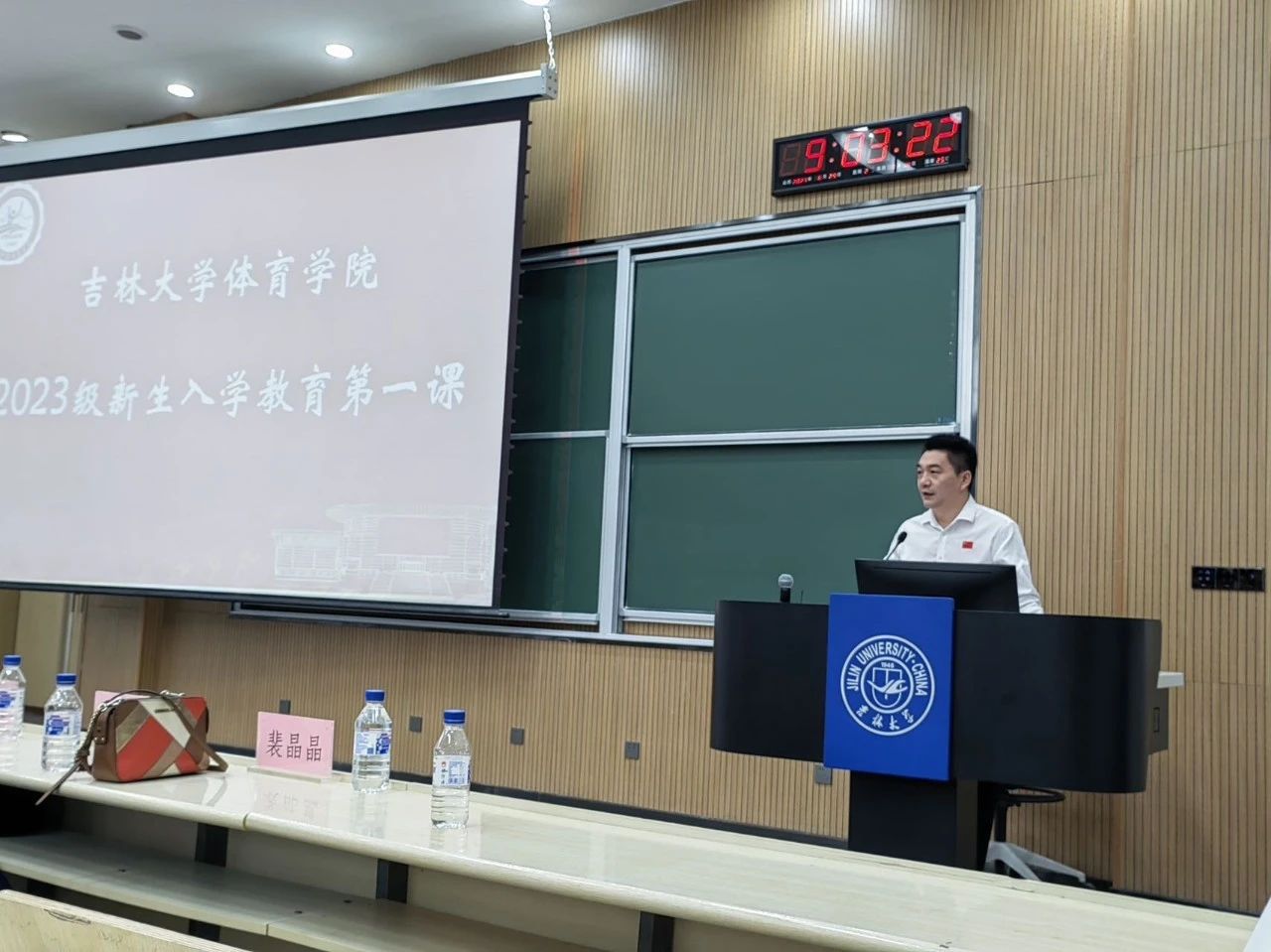 逄锦彩书记首先向新生们讲述了bb贝博艾弗森官方网站的校史以及学校的发展历程,希望新生们要建立文化自信、制度自信、民族自信、提升政治眼界,努力成人、成才、成为国之栋梁。接着,逄锦彩书记寄语新生,党的二十大已经胜利召开,同学们是强国的一代,要全过程参与强国建设,要担负起中国体育未来的使命,希望同学们积极响应时代召唤,积极践行“强国先强身、吉大作先锋”,投身强国建设,为全面建设社会主义现代化国家贡献青春力量。