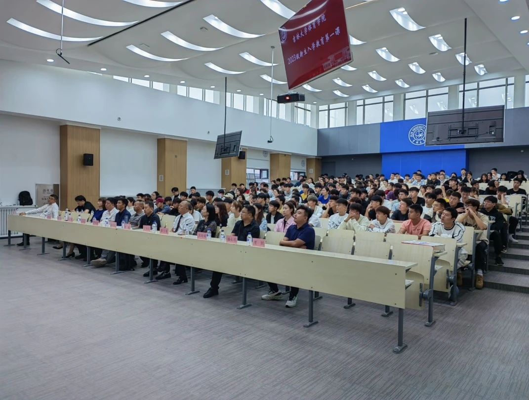 8月29日上午,bb贝博艾弗森官方网站在中心校区逸夫楼第15阶梯教室开展新生入学教育第一课,学院全体领导班子、部分教师代表及全体2023级新生参加。会议由党委副书记兼副院长苑锐主持。
