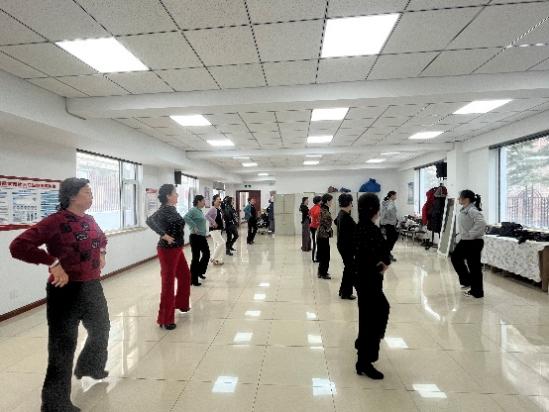 在前进街道文苑社区,体育指导队员认识为居民做做示范,现场气氛热烈融洽,吸引了更多的居民参与到体育运动中。