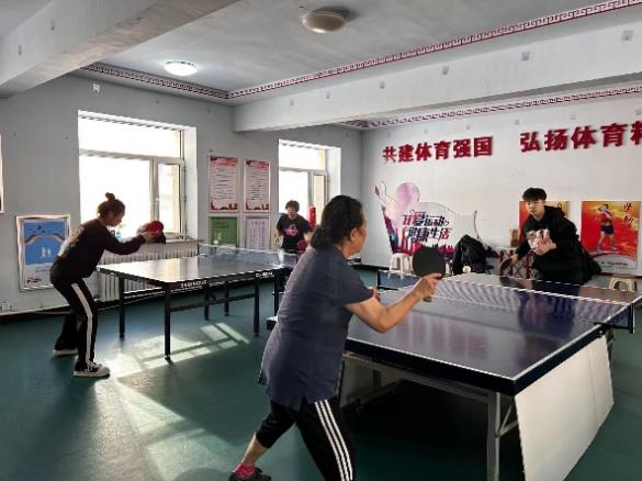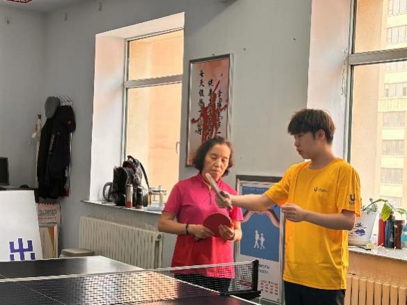 在前进街道宇光社区,体育指导队员为居民详细地讲解乒乓球动作要领,并进行了指导锻炼。