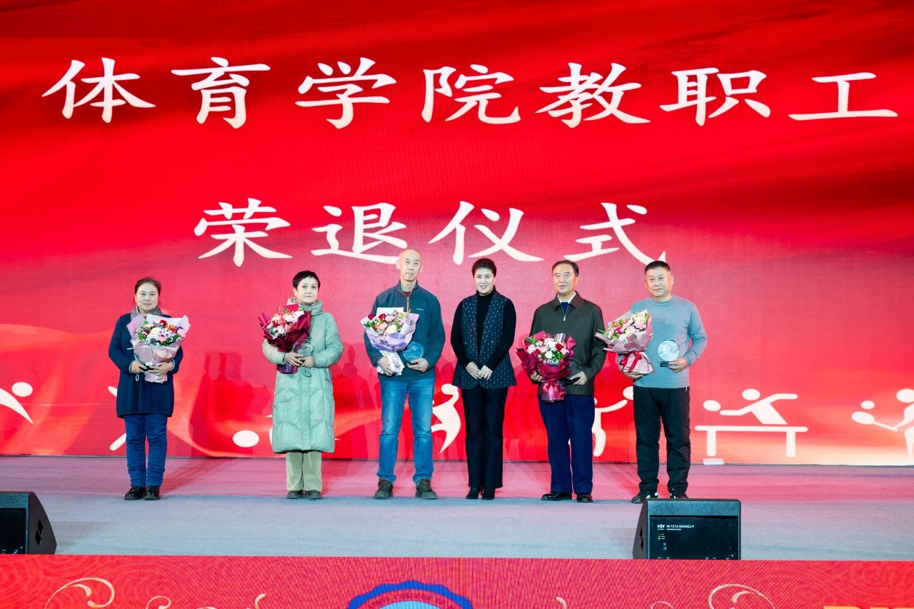 随后进行教职工荣退仪式,裘鹏、黄蕾为荣退教职工颁发奖牌、鲜花。