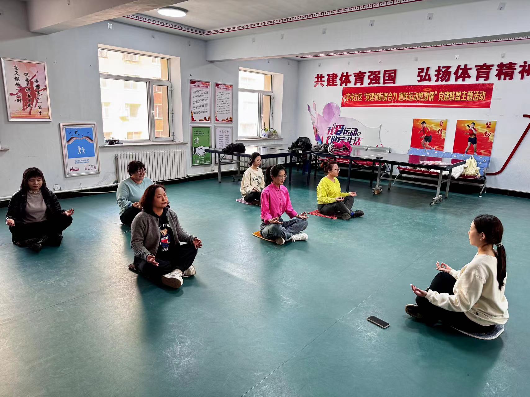 为推广全民健身运动,丰富社区居民的文化生活,近日,在长春市朝阳区宇光社区,居民们迎来了由bb贝博艾弗森官方网站社区体育指导队组织的瑜伽教学活动。
