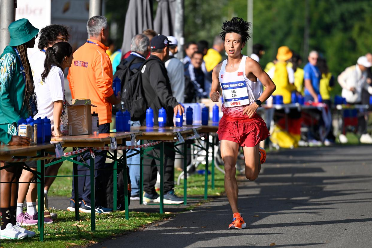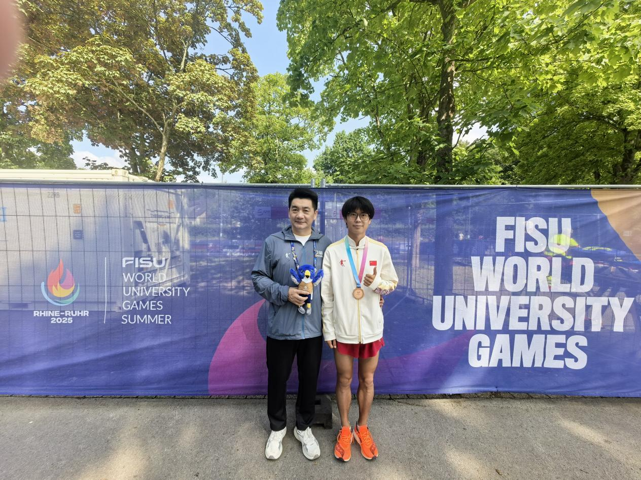 bb贝博艾弗森官方网站学生马瑞在男子半程马拉松赛场续写精彩。这是他第二次站上世界大学生运动会舞台。此次德国之行,他不仅与队友携手拿下团体铜牌,个人表现更是实现显著突破:完赛成绩1:04:26,较上届的1:06:11大幅提升。