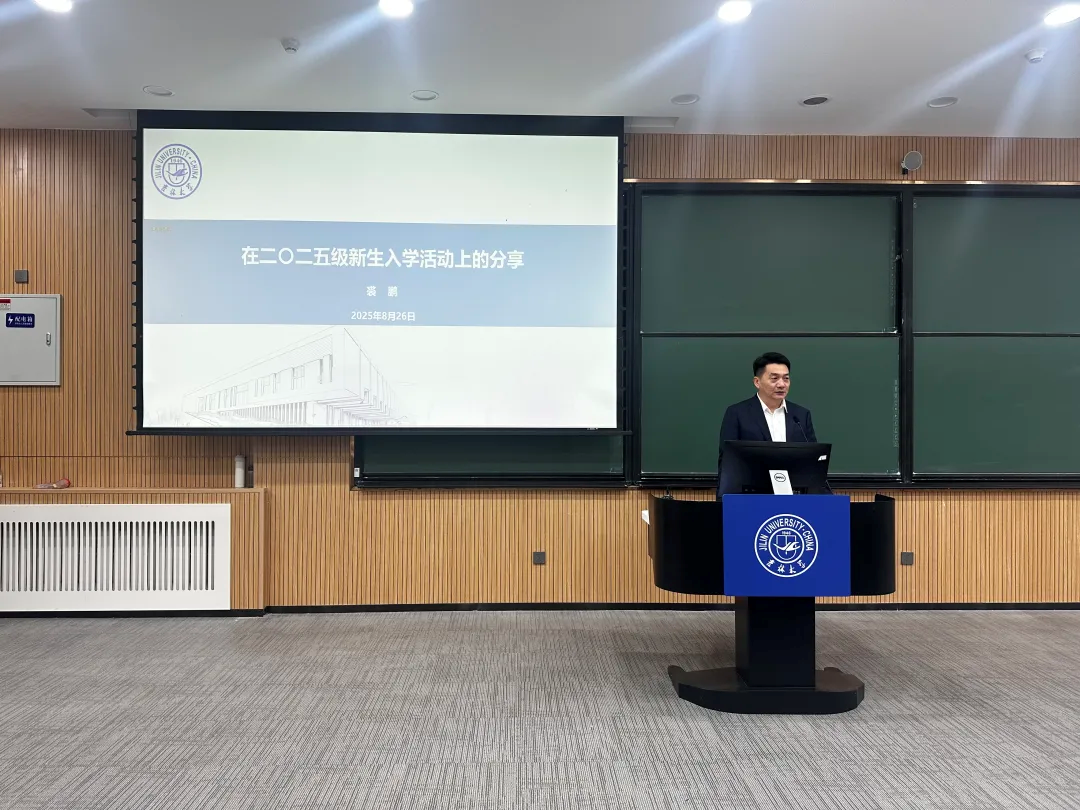 党委书记黄蕾首先代表学院党委对2025级新生的到来表示热烈欢迎。黄蕾以学校的历史沿革、学院的发展脉络、吉大的“三种精神”为主要内容给新生讲授了第一堂思政课。黄蕾指出,重温校史,为了勉励大家坚守初心,厚植爱校荣校情怀。回顾学院发展历程,为了鼓励大家传承奋斗精神,凝聚兴院强院力量。解读“北上精神”、“白求恩精神”与“黄大年精神”,为了号召大家以实际行动践行“吉大人”的使命与担当。最后,黄蕾对新生们提出三点希望:一是坚定理想信念,树立正确目标,成长为有理想、敢担当、能吃苦、肯奋斗的新时代青年;二是勤学钻研,锤炼本领,勇攀科学高峰,努力成为可堪大用的栋梁之材;三是勇担使命,积极投身中国式现代化建设,在实践中长才干,争做大事业的生力军。