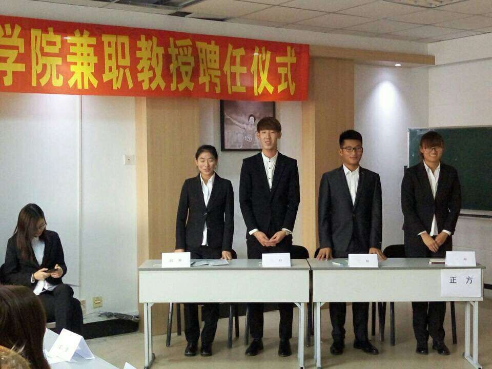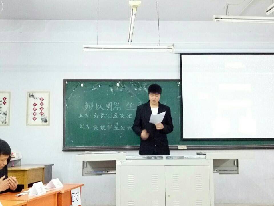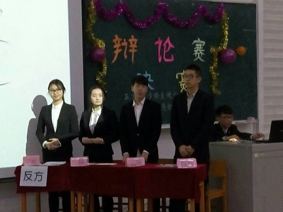 11月19号,由bb贝博艾弗森官方网站团委主办的“辩以明思,坐以论道”主题辩论赛决赛在经信教学楼第五阶梯教室隆重举行。bb贝博艾弗森官方网站党委副书记兼副院长吴哲老师、学生工作办公室主任王赫谊老师、团委副书记王锟老师、团委副书记韩旭、学生会主席李腾飞以及社联主席于小军担任了本次辩论赛的评委,2014级与2015级同学出席了本次比赛。