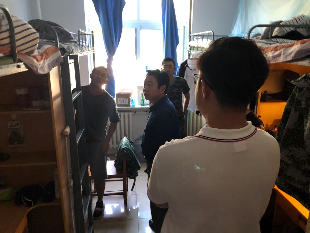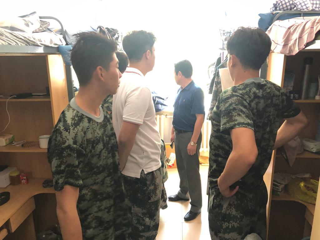 为深入贯彻军训要求,提高学生自我管理意识,按照学院新生入学教育总体安排,9月11日中午,bb贝博艾弗森官方网站党委副书记兼副院长田进、辅导员宫勖能及部分学生干部在军训期间走访检查了新生寝室。