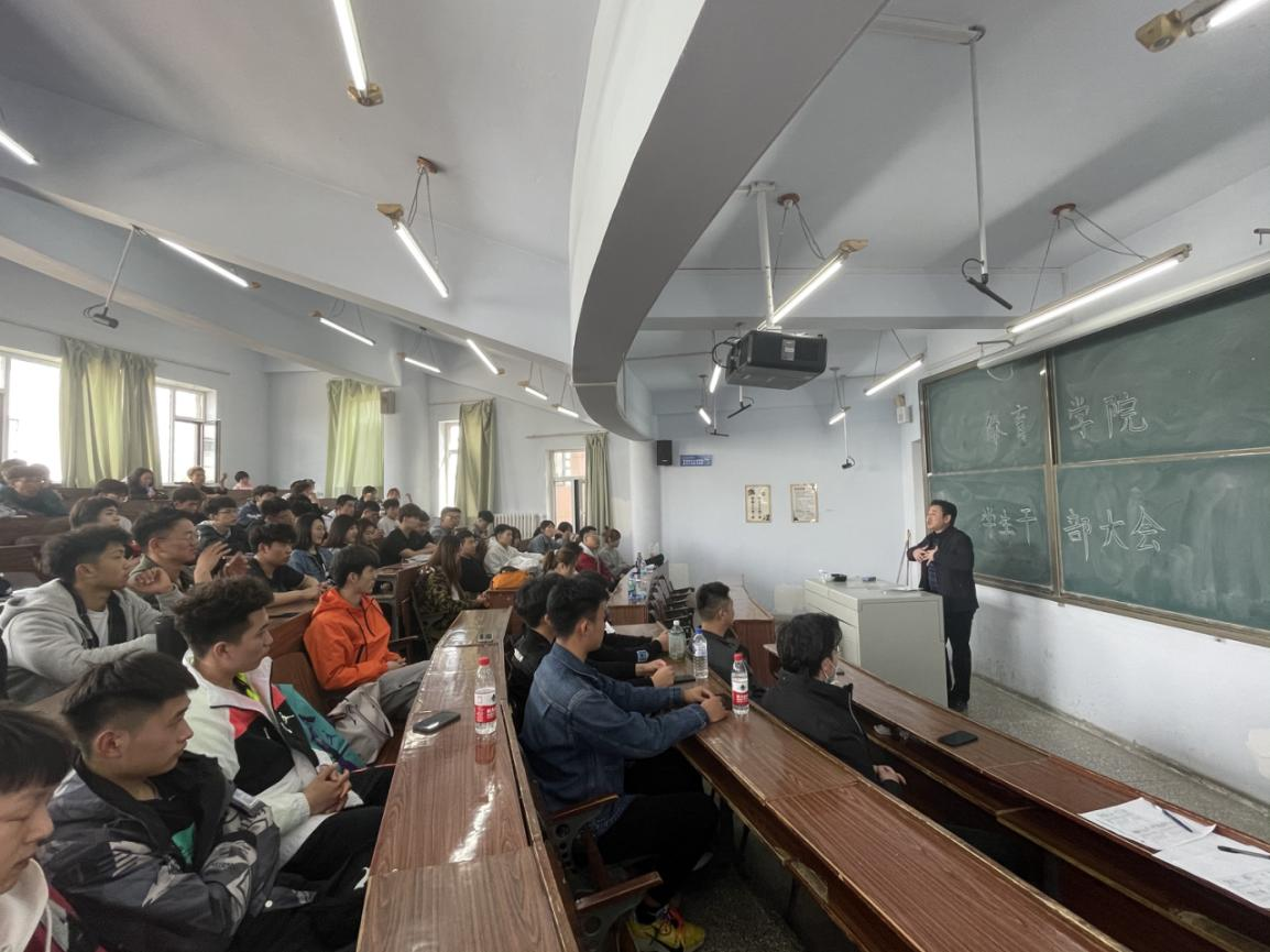 为做好新学期学院各项学生工作的规划与部署,明确学生干部工作任务,bb贝博艾弗森官方网站于4月1日中午在萃文楼第九阶梯教室召开了全体学生干部大会。学院党委副书记兼副院长田进、全体辅导员及全院学生干部参加本次大会。