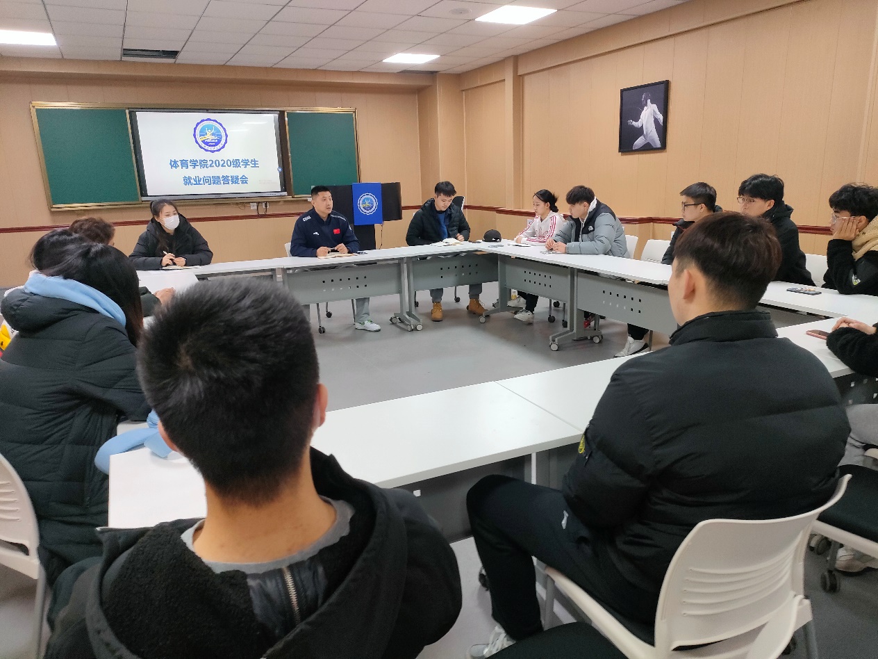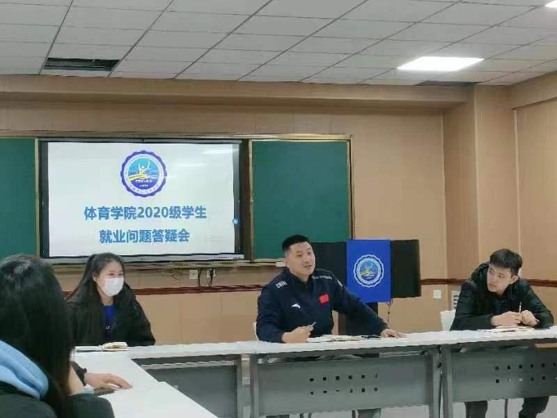 座谈中,王老师首先提出了学生简历撰写的问题,指出写简历要精简明了,抓住重点。其次,同学们也在会中提出自己的问题,王老师耐心解答并着重向大家解释了什么是“选调生”、“2+3政策”、体育产业销售、公务员及应届毕业生竞争等问题。同时,王老师结合学院学科特点,阐释往届学生案例,为同学们讲解了毕业后的升学与职业选择问题,并叮嘱同学务必结合自身实际情况,合理做出职业生涯规划。