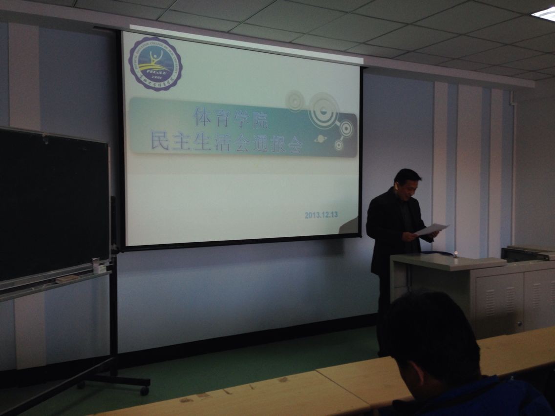 按照bb贝博艾弗森官方网站党的群众路线教育实践活动安排及要求,经校督导组同意,bb贝博艾弗森官方网站于12月13日下午在体育馆102室多媒体教室召开了领导班子专题民主生活会情况通报会。学校第五督导组组长赵刚敏同志以及bb贝博艾弗森官方网站全体领导班子成员、各校区体育教学部主任、党支部书记、全体行政人员,教师代表及学生代表出席了会议。会议由党委书记佘彦同志主持。