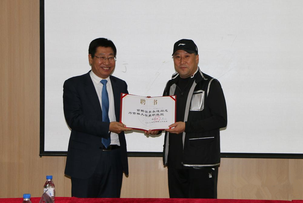 首先,bb贝博艾弗森官方网站党委书记佘彦教授宣读bb贝博艾弗森官方网站关于聘任李永波教练为bb贝博艾弗森官方网站兼职教授的决定,由学校党委副书记冯正玉教授为李永波教练颁发bb贝博艾弗森官方网站兼职教授聘任证书。之后,bb贝博艾弗森官方网站院长、博士生导师袁雷教授讲话,向李永波教授表达了热烈的欢迎并介绍了bb贝博艾弗森官方网站的发展历程与获得的成绩,他表示,李永波教授的到来一定会为bb贝博艾弗森官方网站的发展带来强有力的推动。然后,李永波教授讲话,对bb贝博艾弗森官方网站的兼职教授聘任表达了感谢,同时也感觉到责任的重大,他表示会为bb贝博艾弗森官方网站的羽毛球事业发展做出积极的努力,承诺每年都会回到学校为学生传授专业知识并积极推进同学与专业球员的交流活动。最后,bb贝博艾弗森官方网站党委副书记冯正玉教授讲话,他表示,聘任李永波为兼职教授是学校与学生的双重需要,学校将坚持举行世界冠军进吉大活动,以此影响和感召、教育学子,使之拥有自强不息的精神境界,吸引更多的优秀人才,推动学校羽毛球运动的发展和进步。