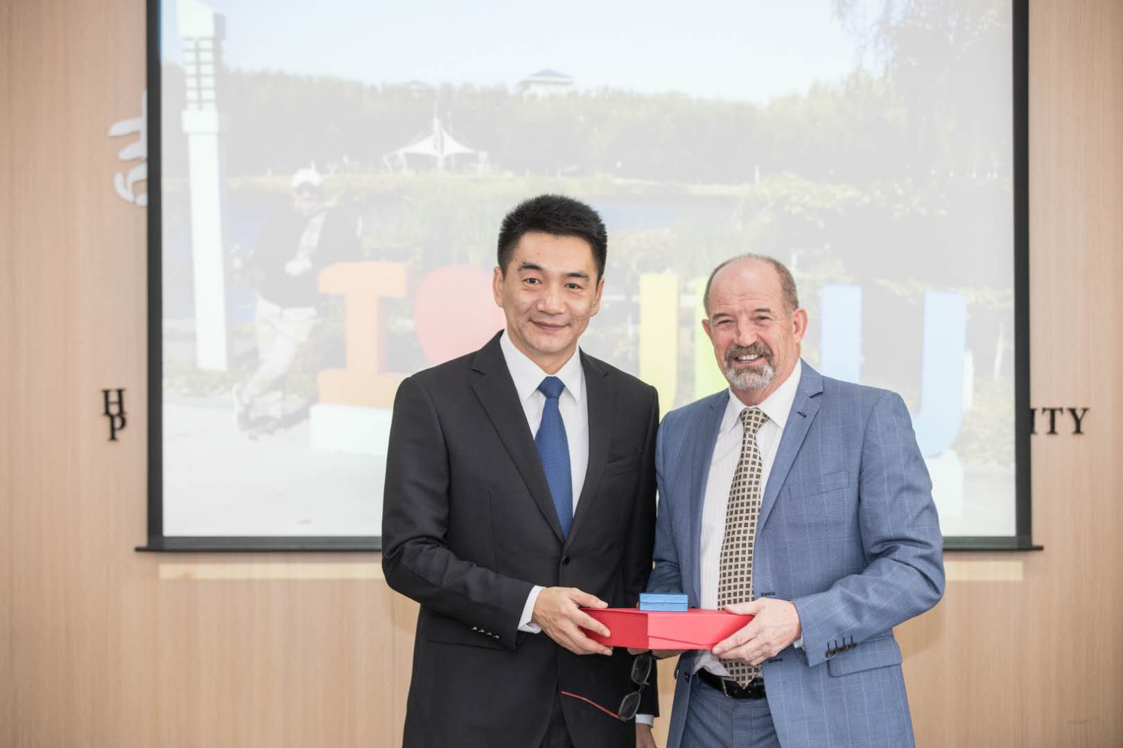 Finally, Qiu Peng and members of the leadership team discussed how to promote exchanges and cooperation with the University of Southern Queensland in Australia in the areas of joint undergraduatescultivation, exchange visits of teachers, short-term exchanges of master and doctoral students, and improvement of teachers’ research capabilities. Participating teachers also had in-depth exchanges with Professor Peter Terry on related issues in his research field. The two parties exchanged gifts to consolidate friendship. The symposium concluded successfully in a warm atmosphere.