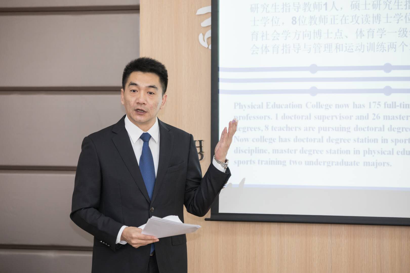 At the symposium, Qiu Pengfirst expressed his warm welcome and heartfelt thanks to Professor Peter Terry for his visit to the Physical Education College during his visit to Jilin University, and introduced the leaders and faculty representatives of the college, and other attendees. Then, he introduced to Professor Peter Terry the development of the Physical Education College in recent years in terms of college profile, student group activities, international exchanges, competitive events, and development goals.
